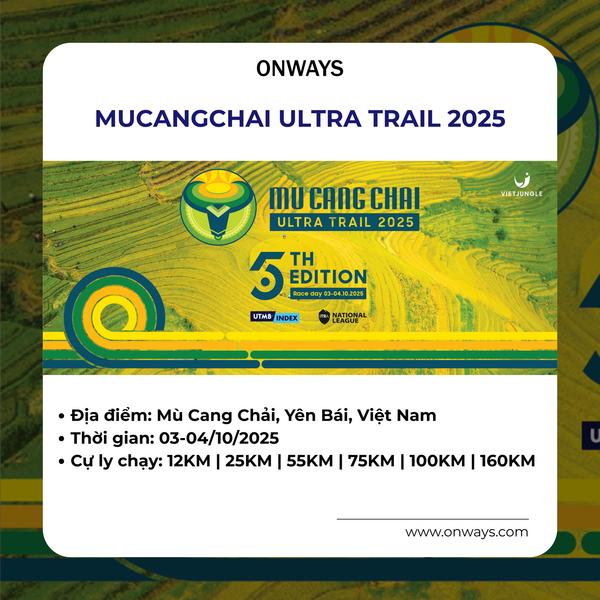 Kỷ niệm 5 năm đầy tự hào, Mucangchai Ultra Trail 2025 mang đến trải nghiệm chạy trail đặc sắc trên những cung đường đẹp nhất Việt Nam. Từ ngày 3-4/10/2025, hãy cùng chinh phục những thử thách mới giữa núi rừng Tây Bắc trùng điệp, hòa mình vào bức tranh ruộng bậc thang bất tận và tận hưởng vẻ đẹp nguyên sơ của thiên nhiên.