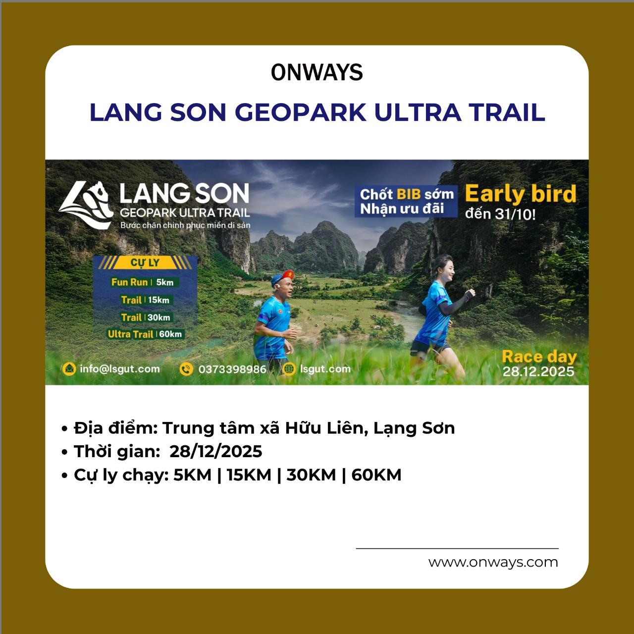 Chào mừng đến với Lang Son Geopark Ultra Trail (LSGUT) – giải chạy độc đáo tại Công viên địa chất toàn cầu UNESCO Lạng Sơn. Đây không chỉ là một cuộc đua, mà là cơ hội để bạn dùng chính đôi chân mình chinh phục một miền đất huyền thoại, nơi mỗi cung đường đều ẩn chứa câu chuyện triệu năm.