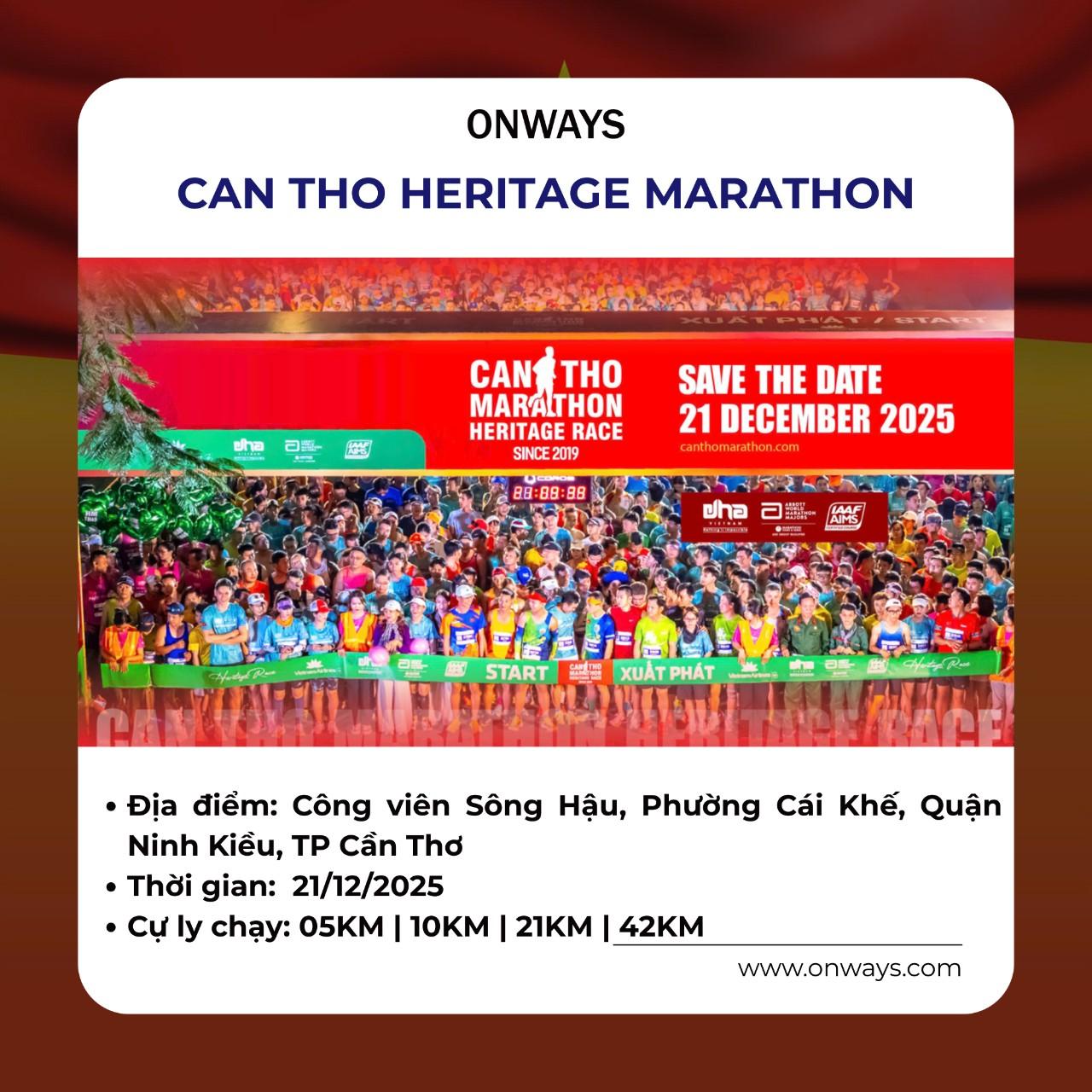 Marathon Quốc tế Di sản Cần Thơ là giải chạy chuẩn quốc tế duy nhất tại thành phố này. Hơn cả một giải chạy, Giải là dịp để tôn vinh nét đẹp văn hóa, con người và đặc sản ẩm thực, thiên nhiên sông nước miền Tây Nam bộ.