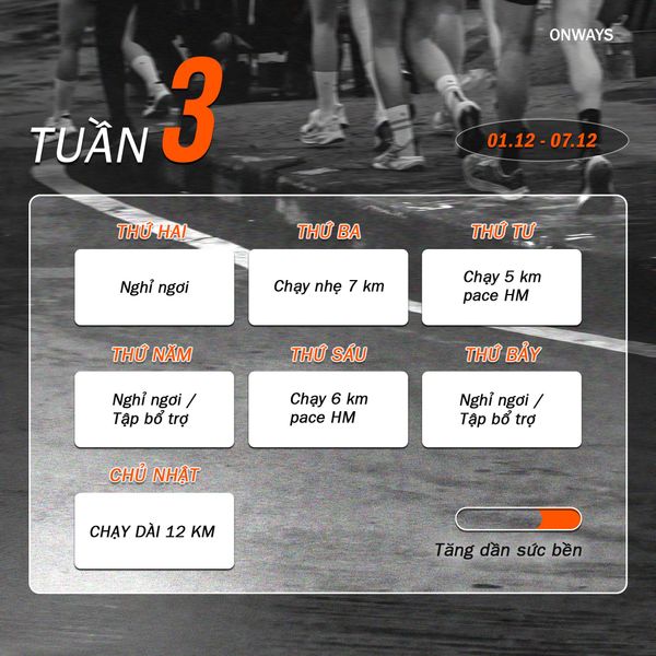 Tuần 7: Chạy thử dài, tinh thần race day - tự tin bứt phá