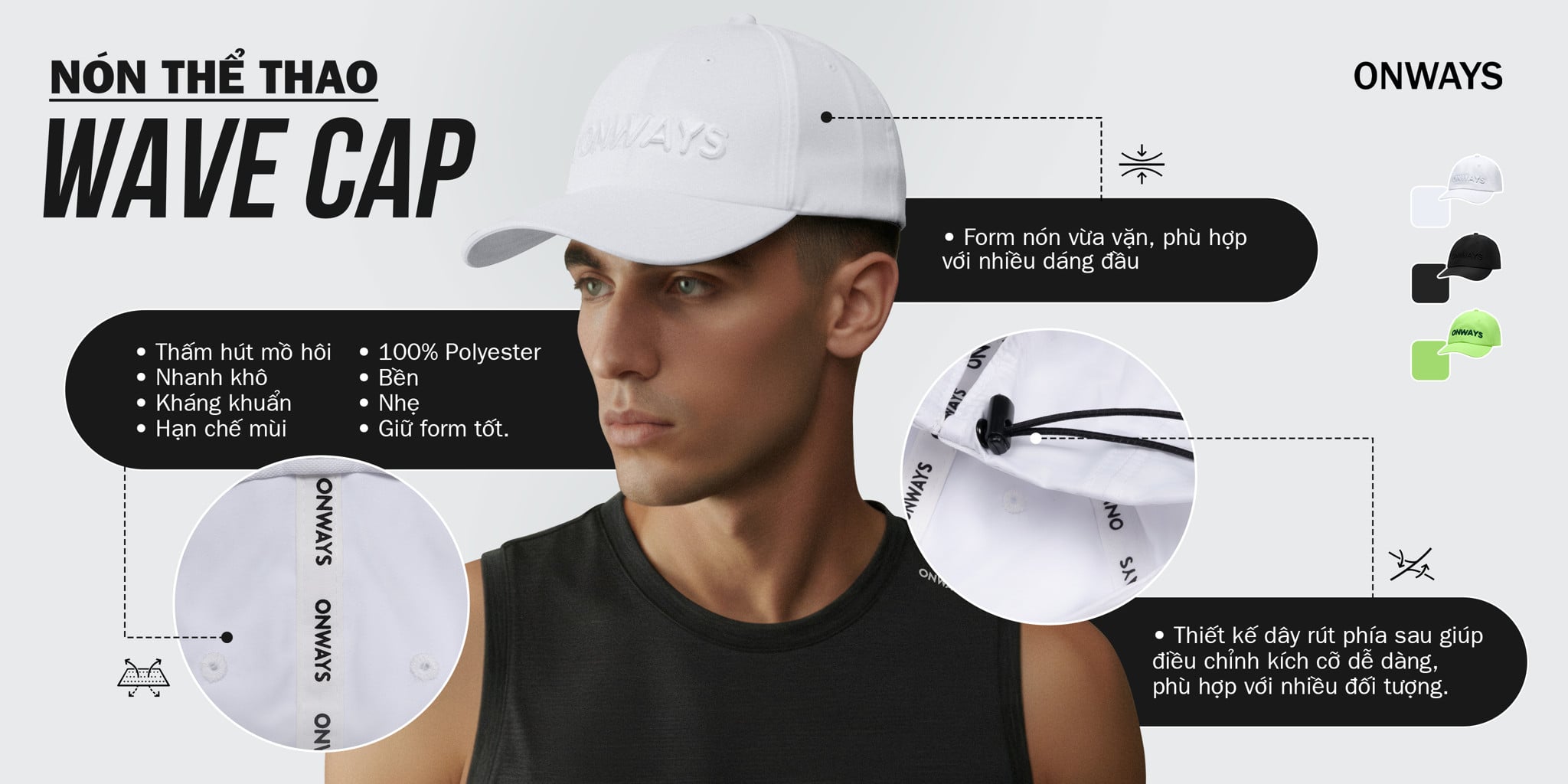 WAVE CAP được thiết kế dành cho những ai tìm kiếm sự kết hợp giữa phong cách và tính tiện dụng, phù hợp cả khi dạo phố hay trong các buổi tập luyện cường độ cao.